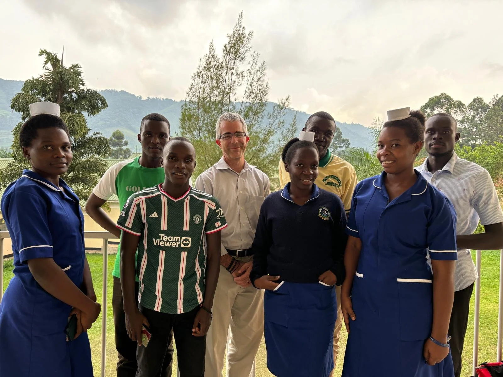 Dr. David Brubaker (center) with nursing students from Uganda Nursing School-Bwindi